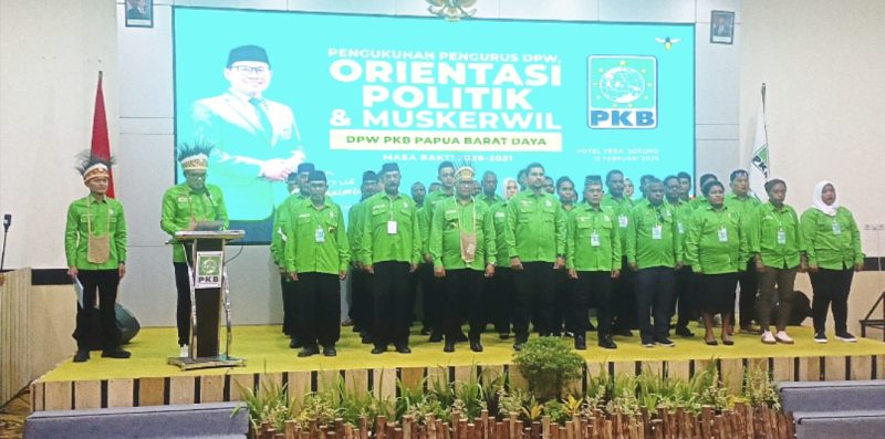 PapuaBaratDayaOnlineNews, SORONG -Partai Kebangkitan Bangsa (PKB) resmi mengukuhkan Dewan Pengurus Wilayah (DPW) Papua Barat Daya masa bakti 2026–2031 di Vega Hotel, Kamis (12/2/2026). Pengukuhan itu dirangkai dengan Orientasi Politik dan Musyawarah Kerja Wilayah (Muskerwil), menandai konsolidasi serius partai di provinsi termuda di Tanah Papua.