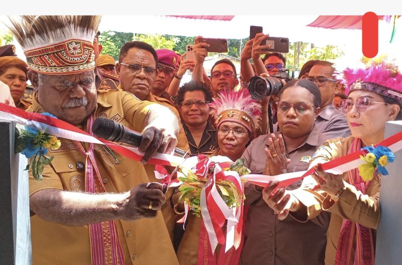 Momentum tersebut ditandai dengan pengguntingan pita oleh Gubernur Elisa Kambu serta penyerahan bantuan secara simbolis kepada mama-mama Papua yang selama ini menjadi tulang punggung ekonomi keluarga.