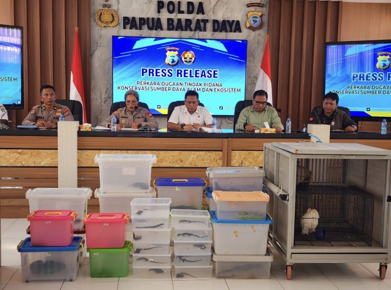 Dalam penggungkapan tersebut, polisi mengamankan berbagai jenis satwa, di antaranya seekor kakatua koki, nuri hitam, kasuari, enam ular sanca hijau, puluhan biawak dari Maluku dan Kepulauan Aru, serta sembilan ekor kanguru tanah atau walabi. Selain itu, ditemukan pula 13 tengkorak buaya muara dan 91 tulang paus.
