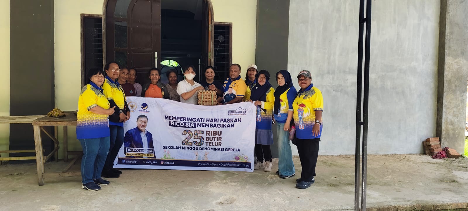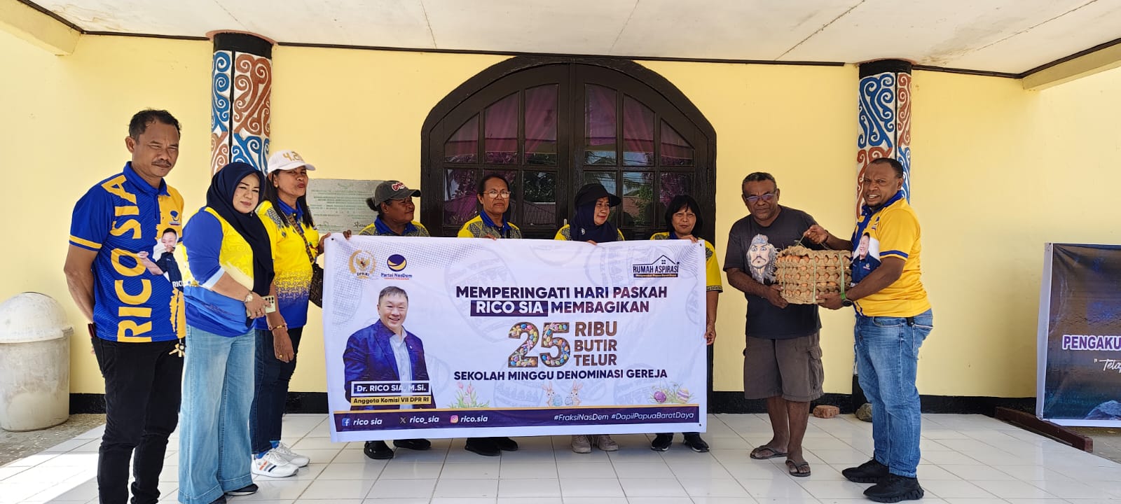PapuaBaratDayaOnlineNews,SORONG -Anggota Komisi VII DPR RI, Rico Sia, menyalurkan sebanyak 25.000 telur Paskah kepada jemaat gereja di wilayah Papua Barat Daya dalam rangka menyambut perayaan Paskah 2026. Kegiatan sosial tersebut dilaksanakan secara bertahap sejak 31 Maret hingga 3 April 2026.